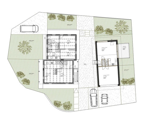 Die 'Piazza' zwischen den Häuser bildet das verbindende Element des zukünftigen Zusammenlebens. Die privaten Aussenräume der einzelnen Gebäude sind auf der 'Piazza' abgewandten Seite, um für alle drei Parteien Rückzugsorte im Freien zu gewährleisten.
